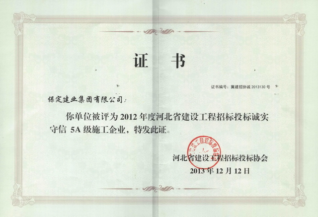 省建設(shè)工程招投標(biāo)誠信5A企業(yè)