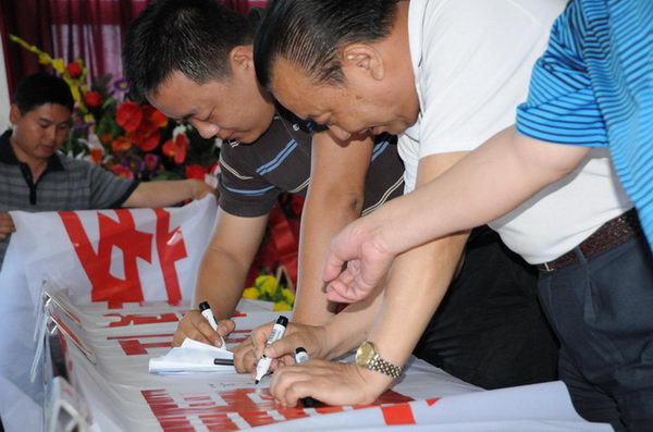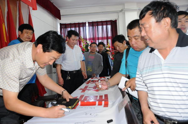 集團公司領導及管理人員在安全宣傳標語上簽名 |